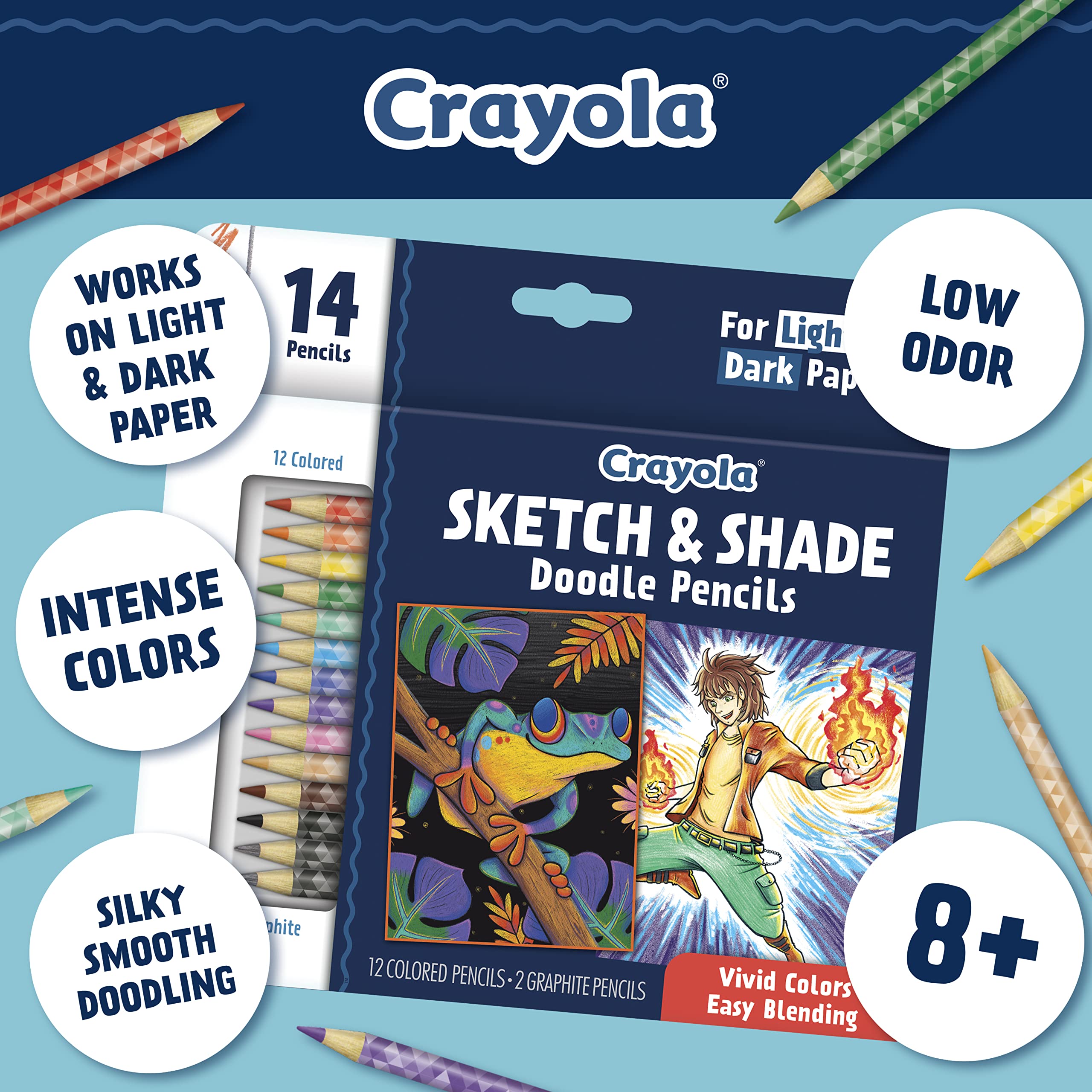 - CRAYOLA COLORED PENCIL SET: 12 count Crayola Colored Pencils for Sketching and Shading, including 2 Graphite Pencils.