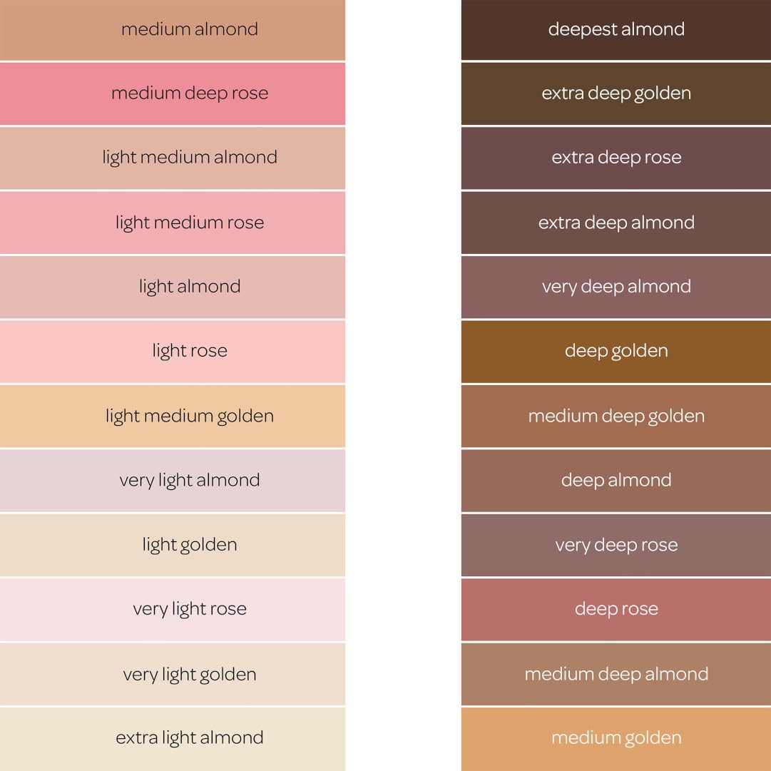 - COLORS OF THE WORLD: Includes colors such as Deepest Almond, Medium Golden, and Light Rose.