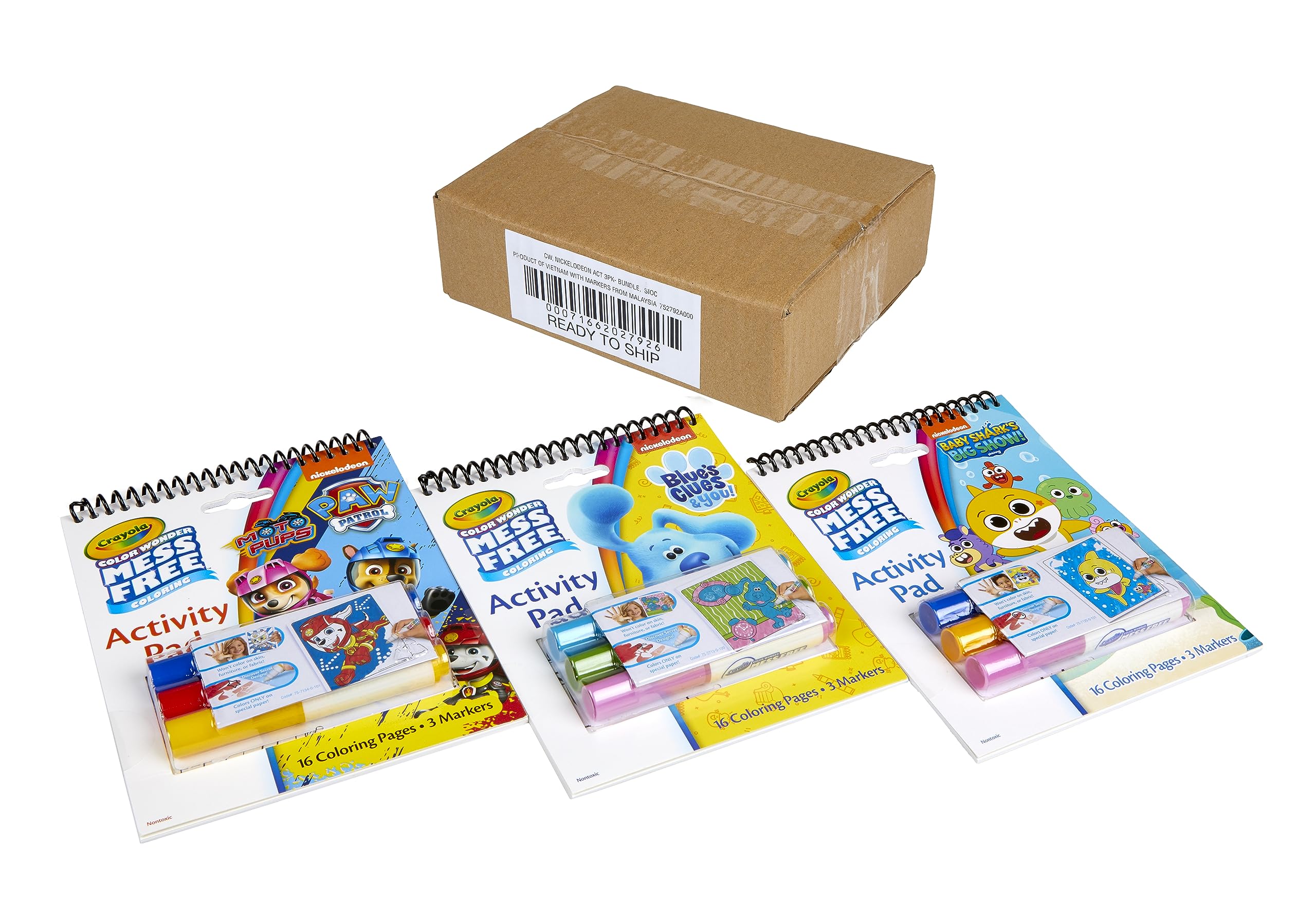 - CRAYOLA COLOR WONDER SET: Contains a 16 page Blues Clues Activity Pad with 3 Mess Free Markers, a 16 page Paw Patrol Activity Pad with 3 Mess Free Markers, and a 16 page Baby Shark Activity Pad with 3 Mess Free Markers.