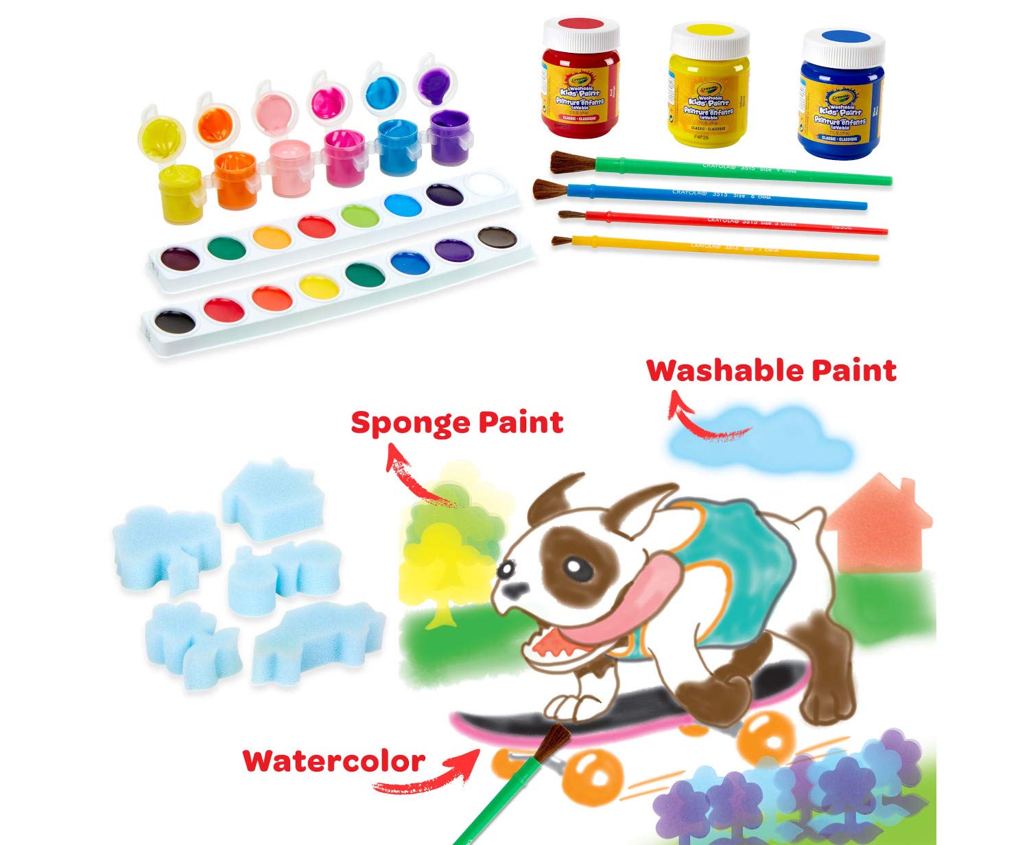 Crayola Washable Kids Paint Set (50pcs), Includes Watercolor & Washable Paints, Painting Paper, Paint Sponge, Kids Paint Brushes—